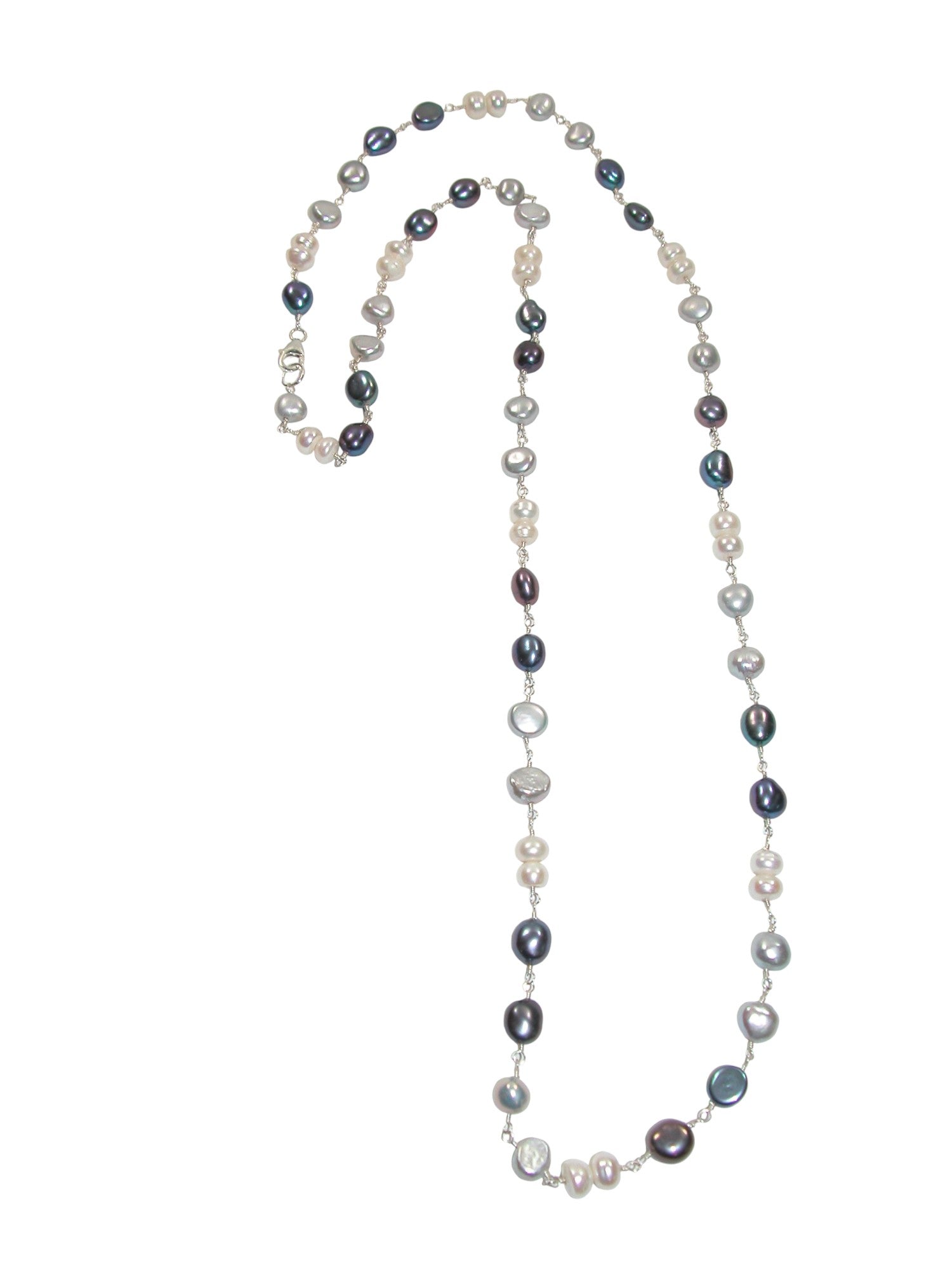 N5494 Grey Peacock White Pearl Jointed Necklace