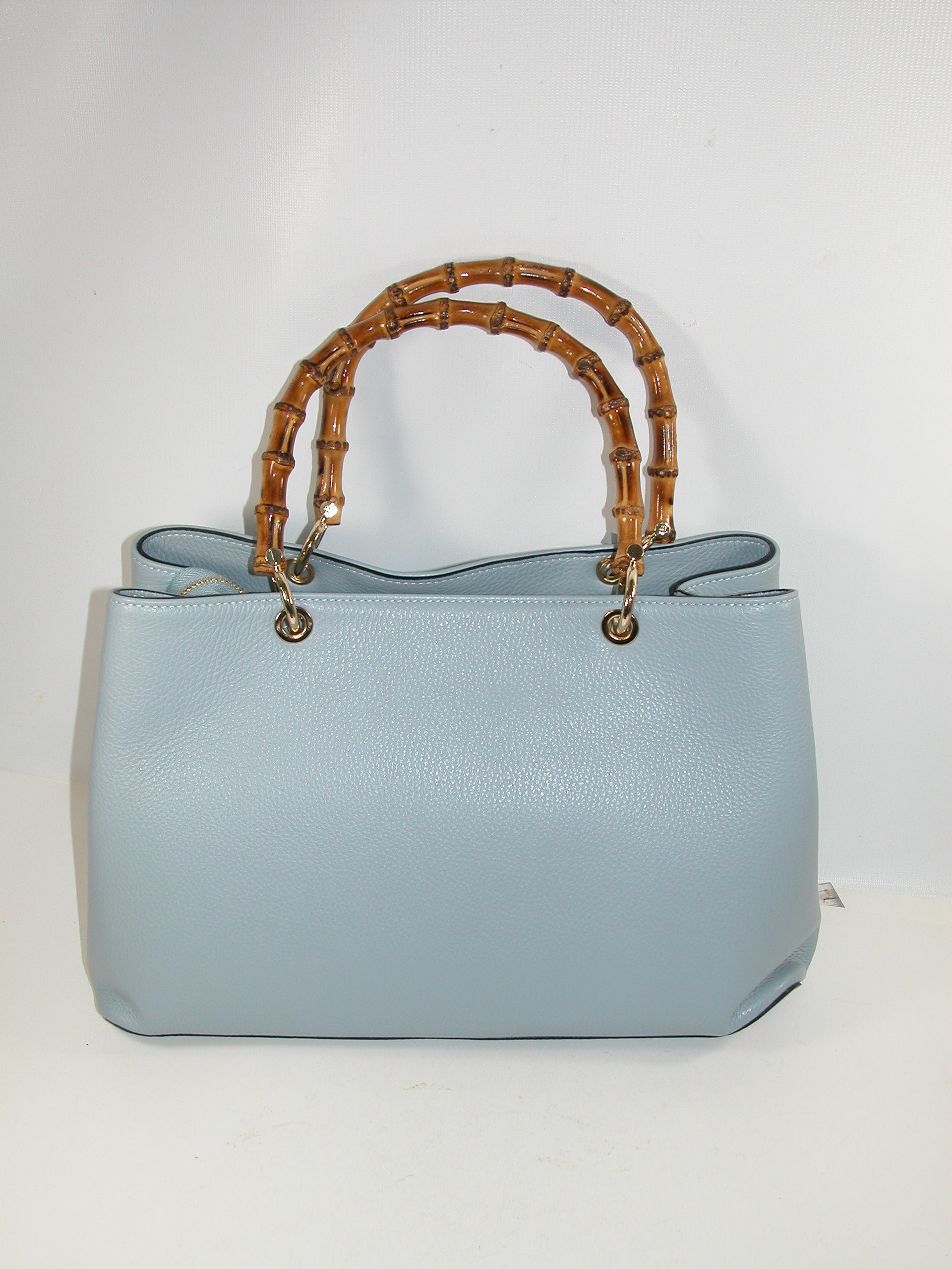 Pale Blue handbag with Bamboo Handle
