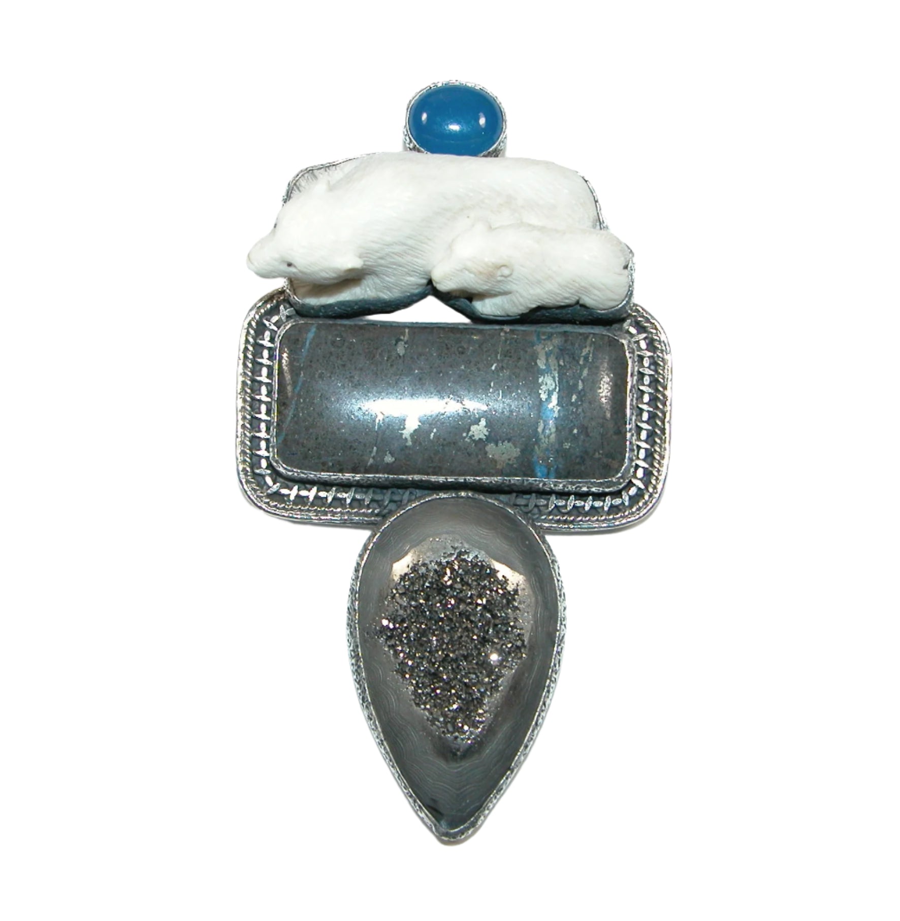 32452 Lapis, Carved Bear Sterling Silver Pin and Pendant