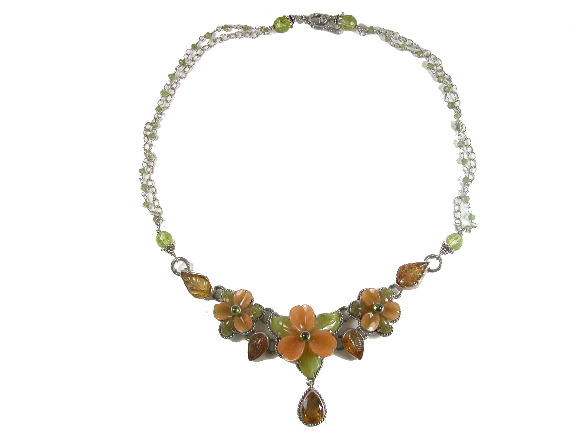 8255A Peridot, Citrine, Agate Flower Sterling Silver Necklace