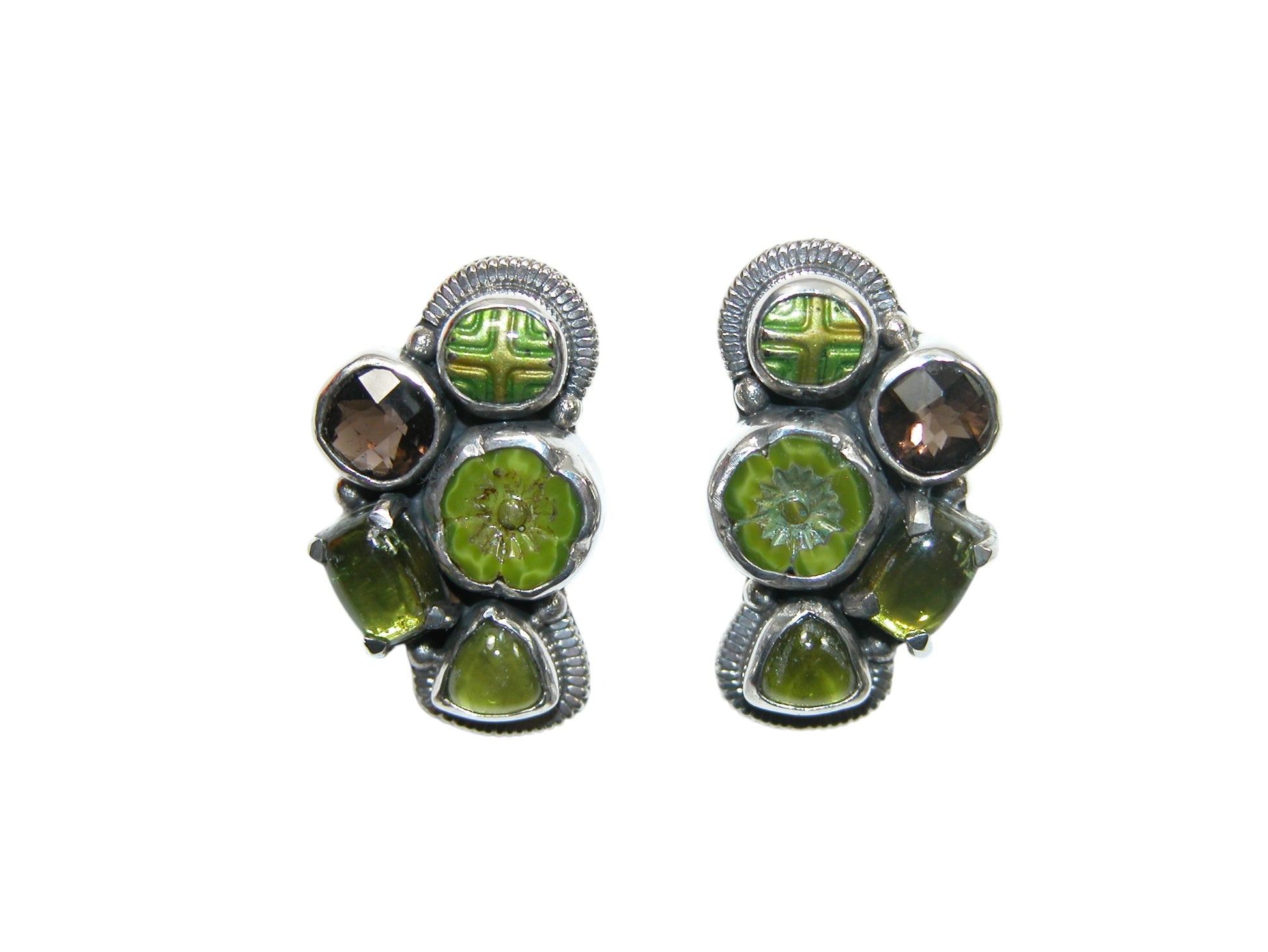 34019 Peridot Smokey Quartz Cluster Sterling Silver Earrings
