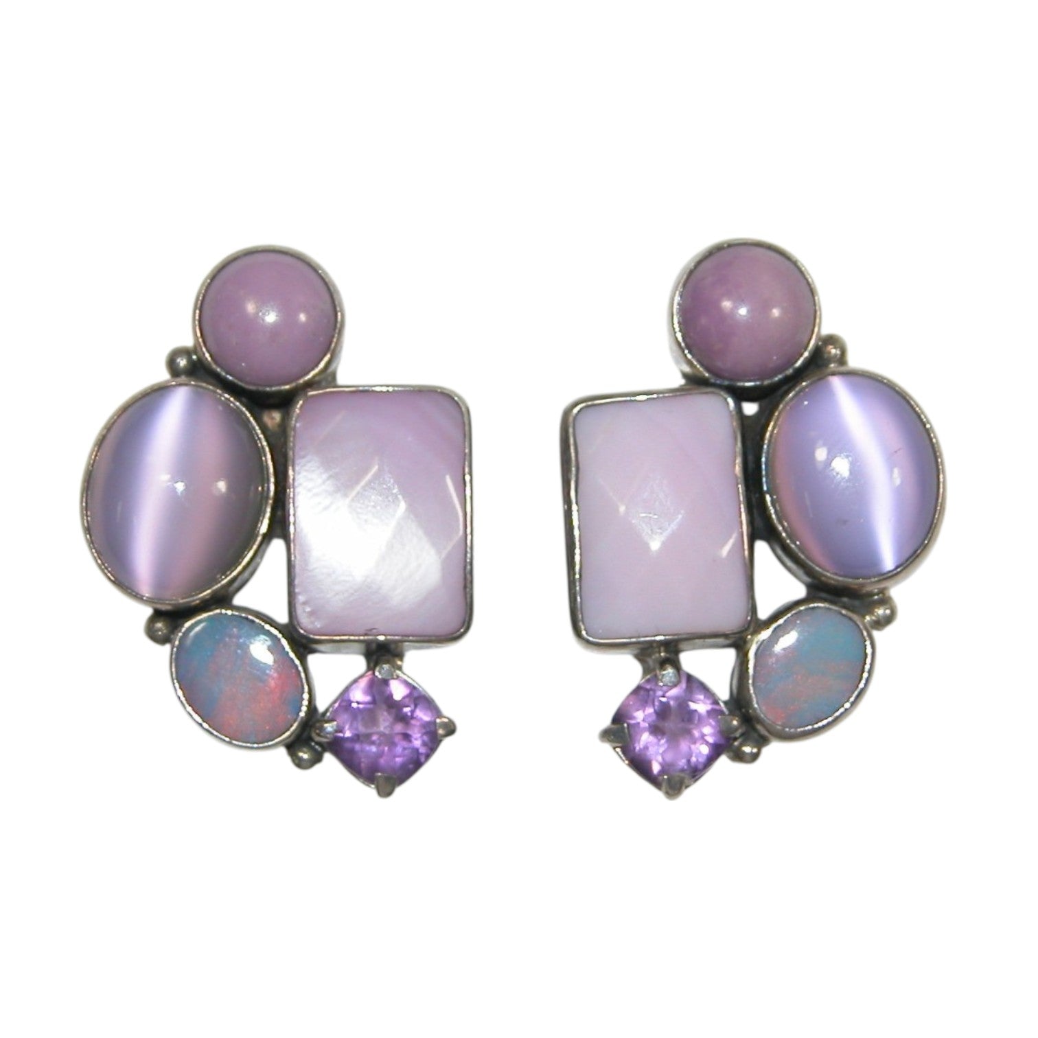 20392 Phosphosiderite, Amethyst Cluster Sterling Silver Earrings