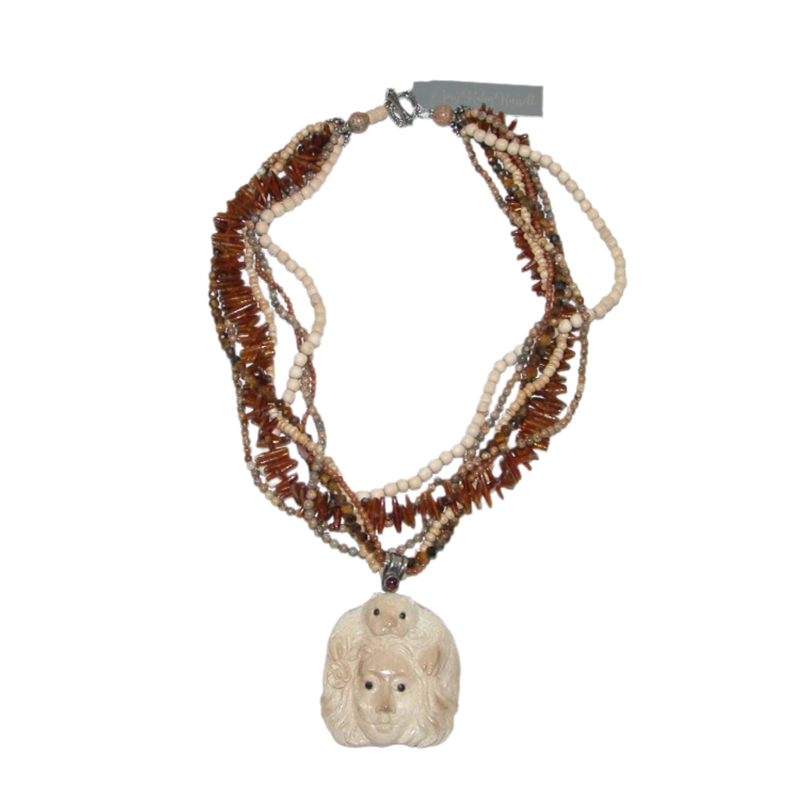 31880A Hand Carved Bone, Tiger Eye, Jasper, Bone 7 Strand Beaded Necklace