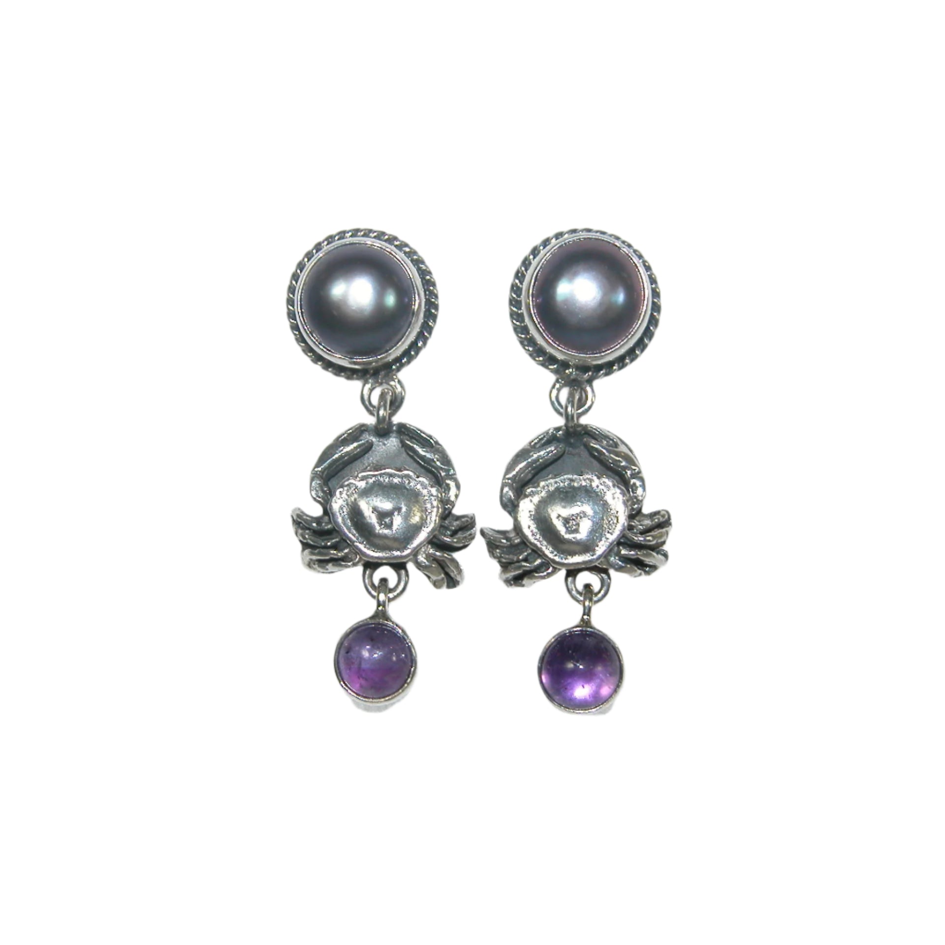 32713 Amethyst Pearl Crab Sterling Silver Dangle Earrings