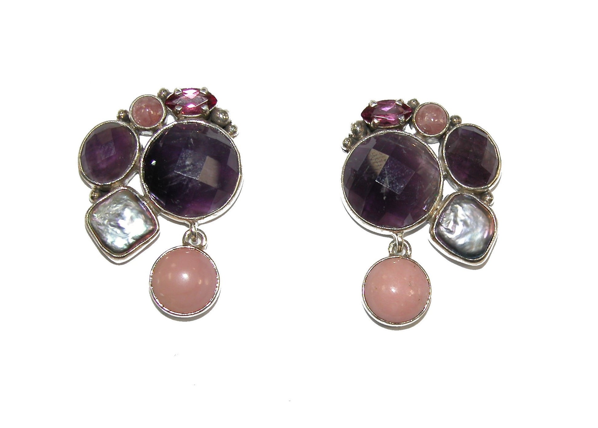 19903 Faceted Amethyst, Pearl, Tourmaline Sterling Silver Earrings
