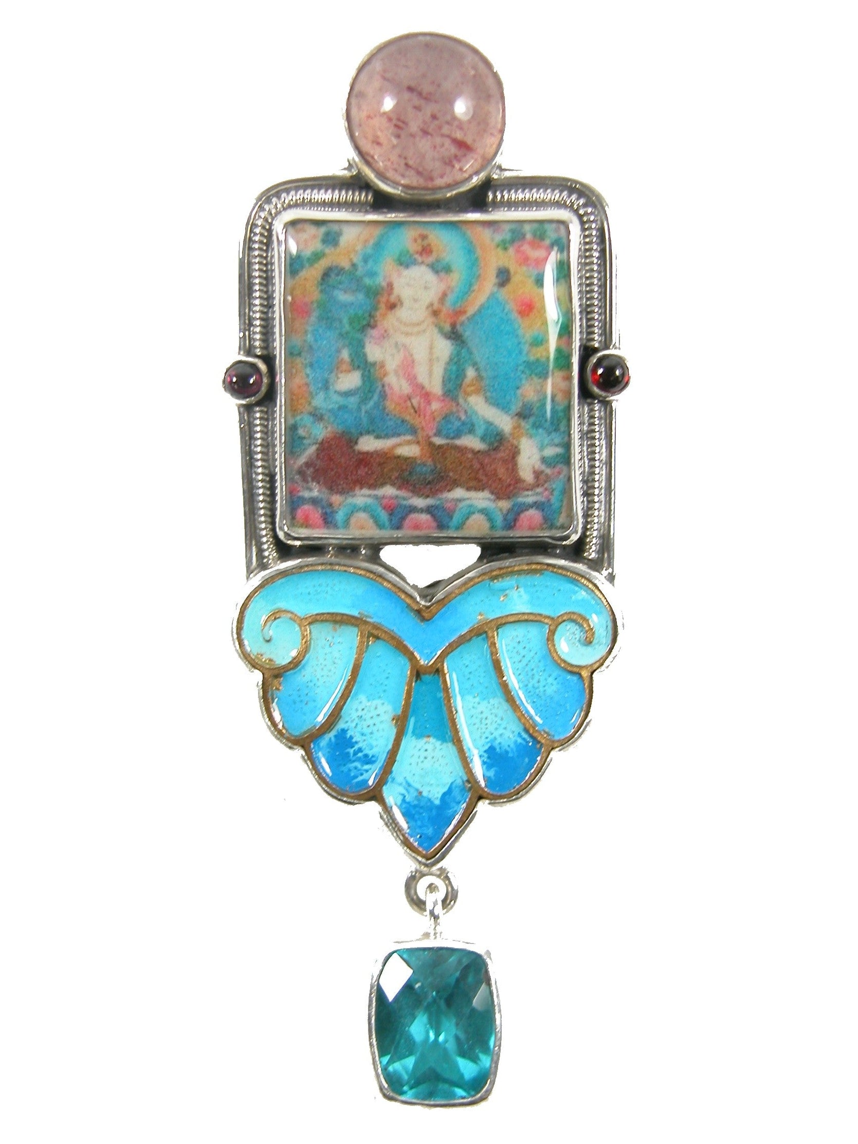 31888 Pink & Blue Hand Enamel Tile Blue Topaz Pin and Pendant