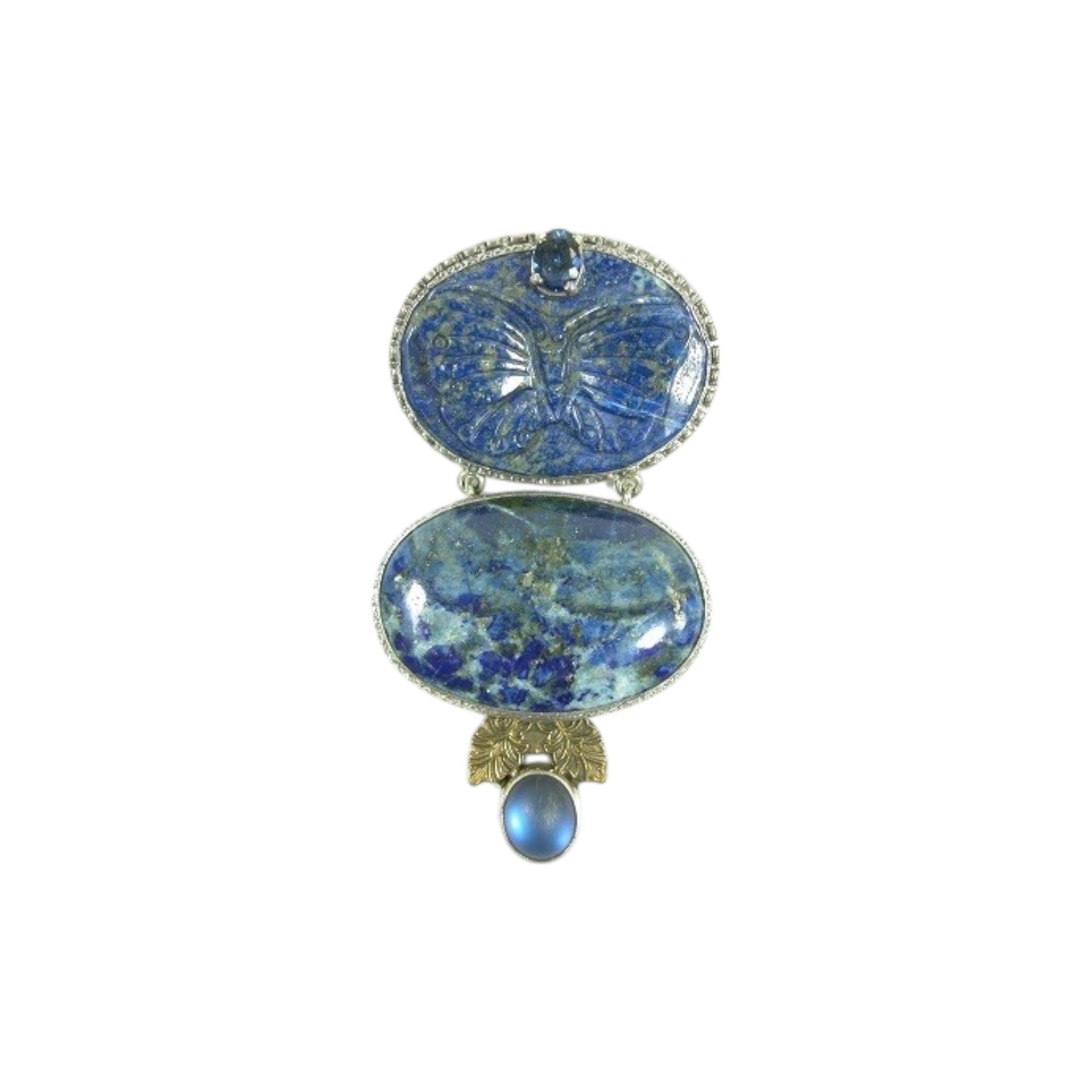 10396 Blue Lapis Carved Butterfly Sterling Silver Pin and Pendant