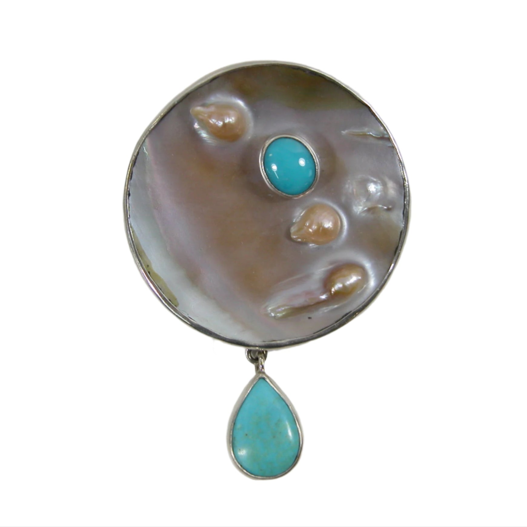 32767A Freshwater Pearl and Turquoise Sterling Silver Pin and Pendant