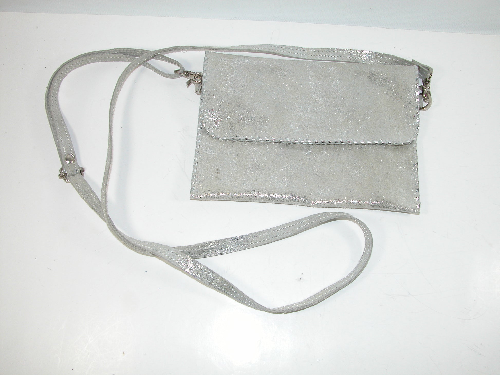 Silver Sueded Leather Clutch Handbag Crossbody GF3842
