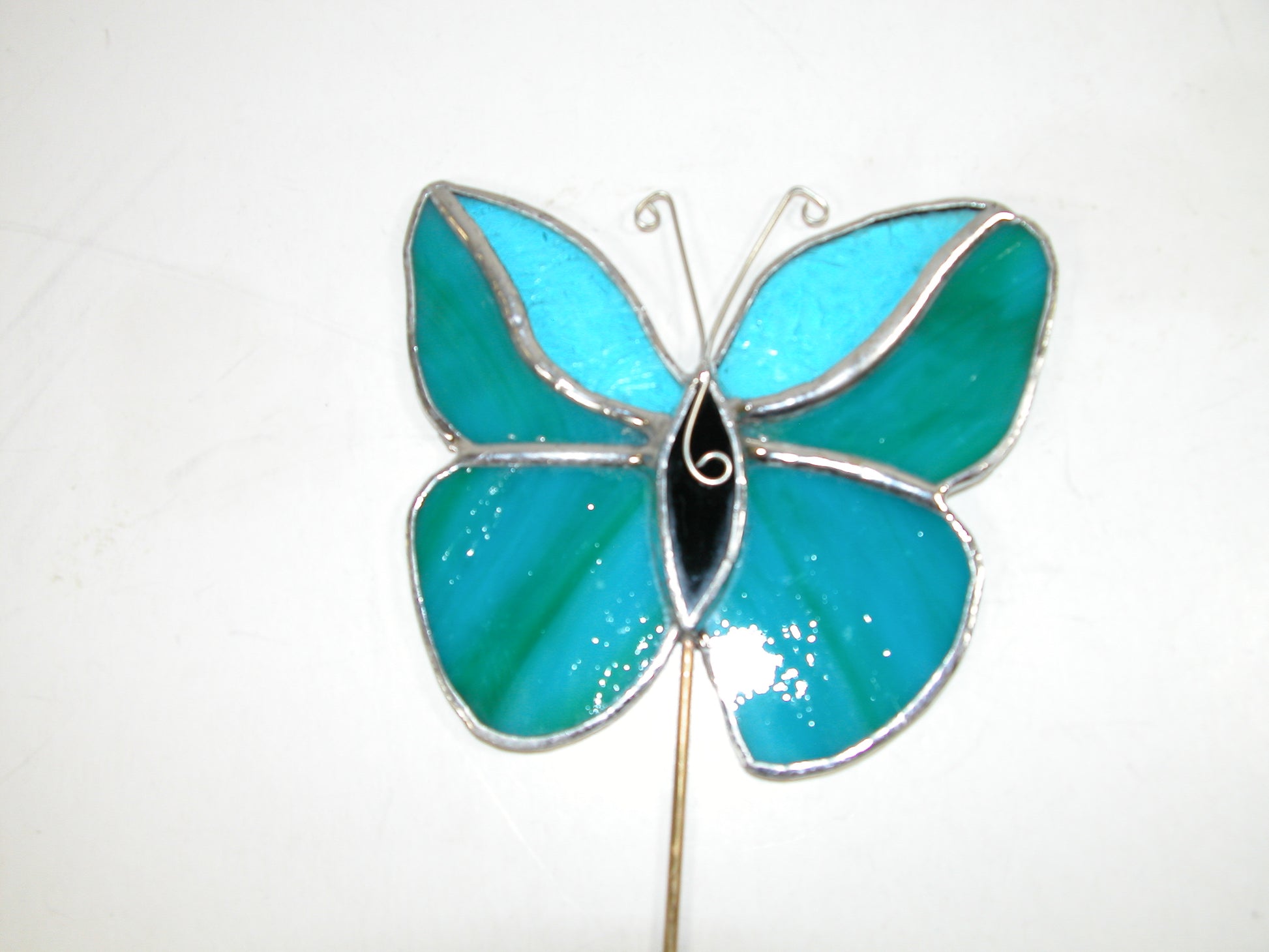 Stained Glass Butterfly Flower Pot GF2118 by LORI