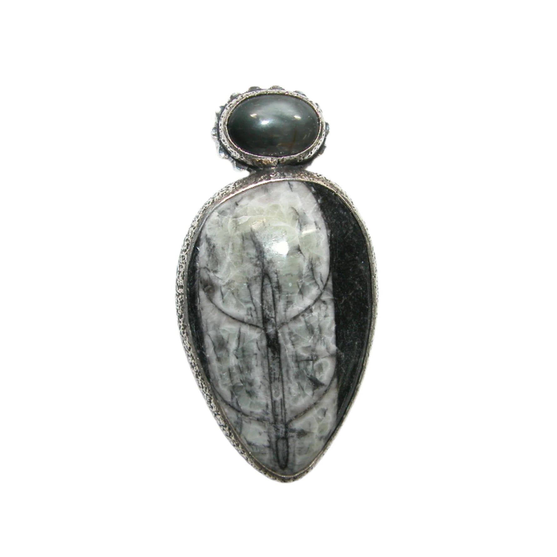 33071 Two Stone Cabochon Sterling Silver Pin and Pendant