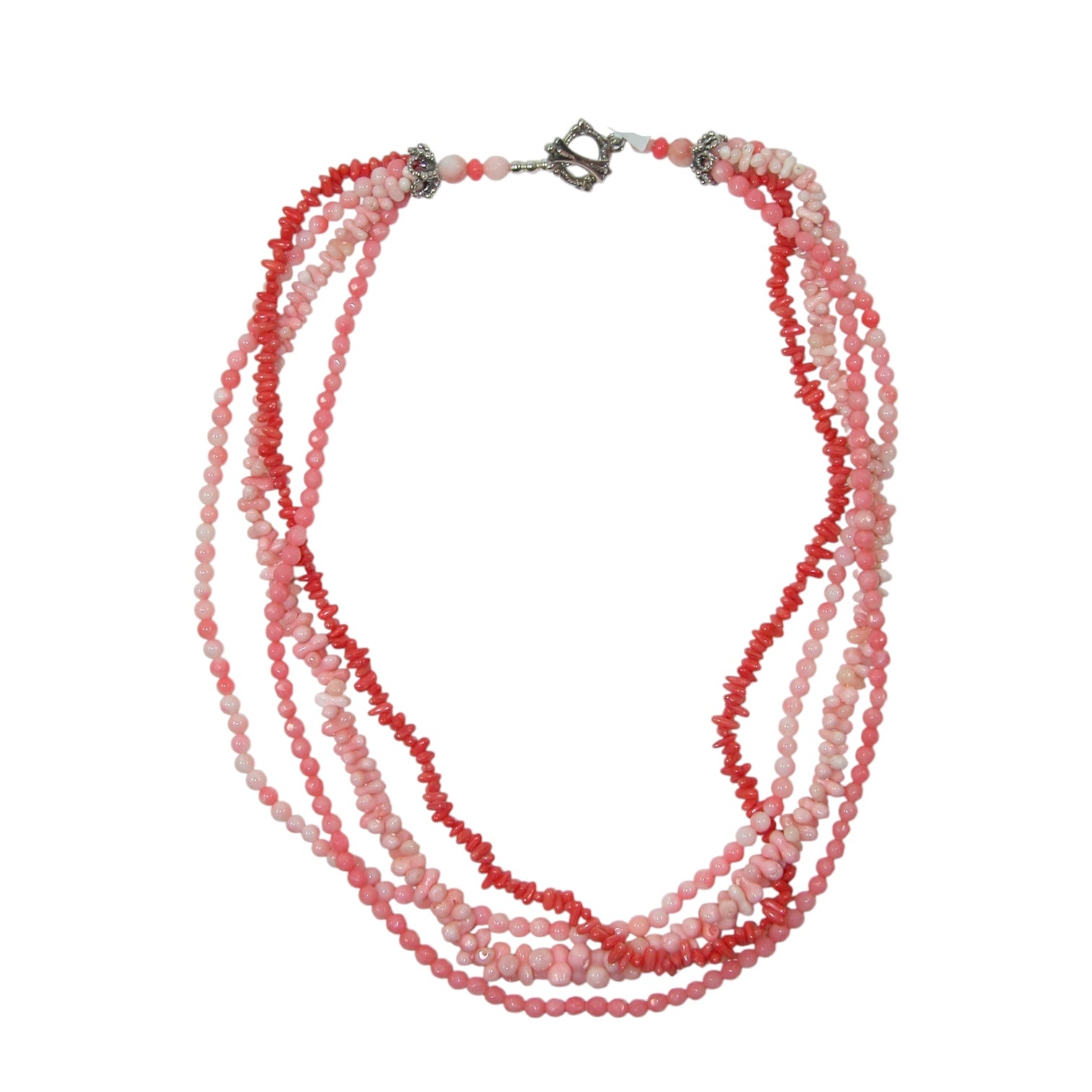 31829 Coral Eight Strand Sterling Silver Beaded Necklace
