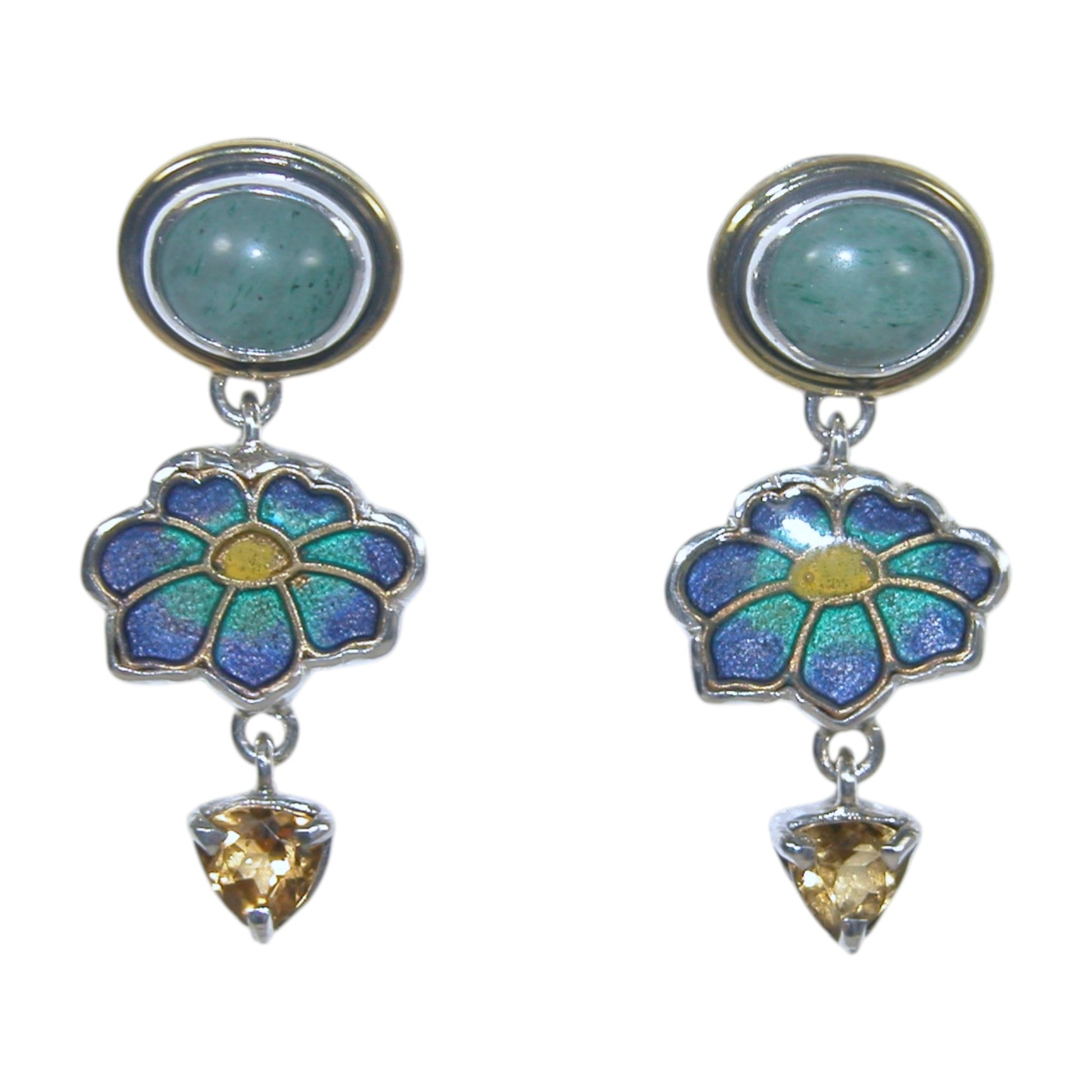 32930D Citrine Enamel Flower Sterling Silver Dangle Earrings
