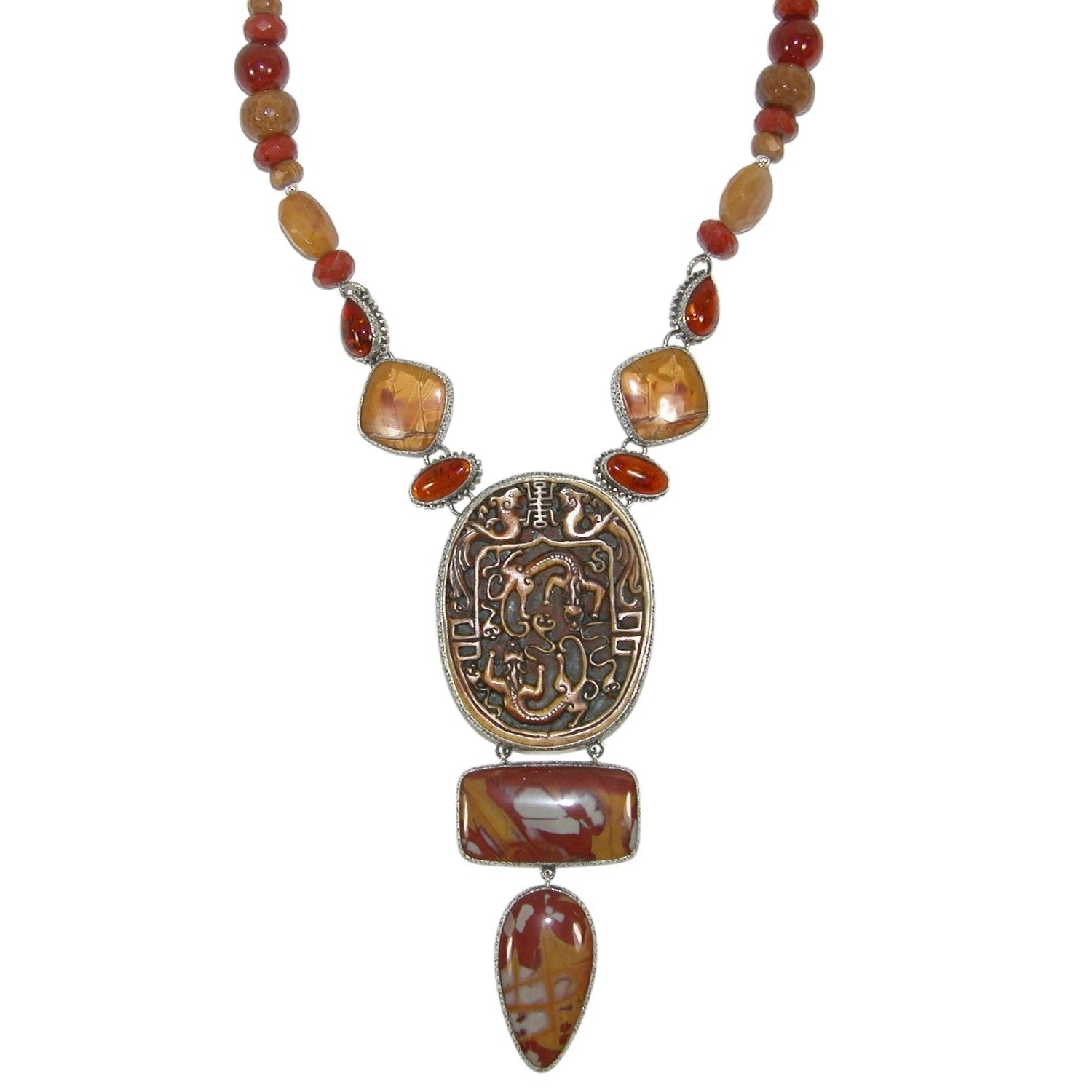 32812 Carnelian Carved Jasper Beaded Sterling Silver Necklace and Pendant