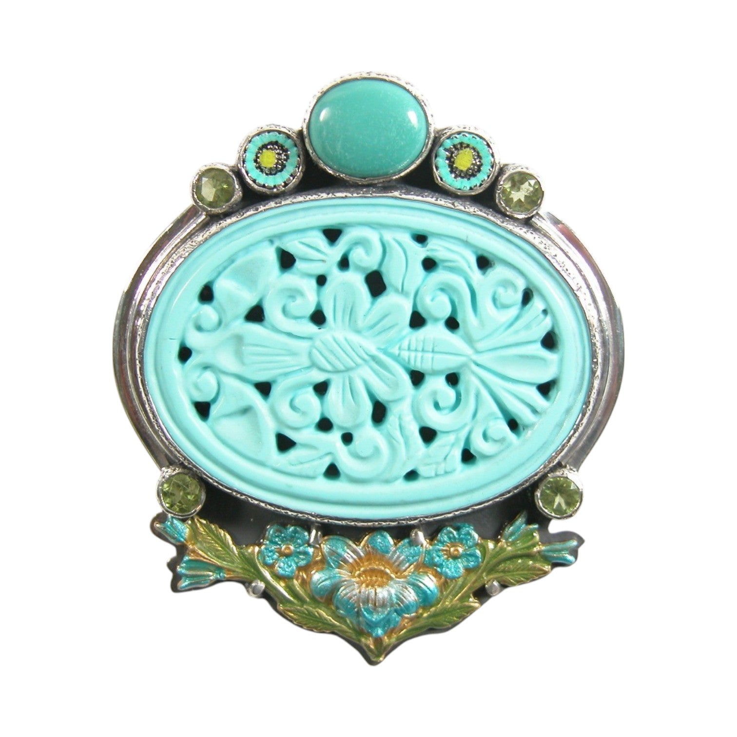 30887 Turquoise Enamel Flower and Peridot on Sterling Silver Pin Pendant