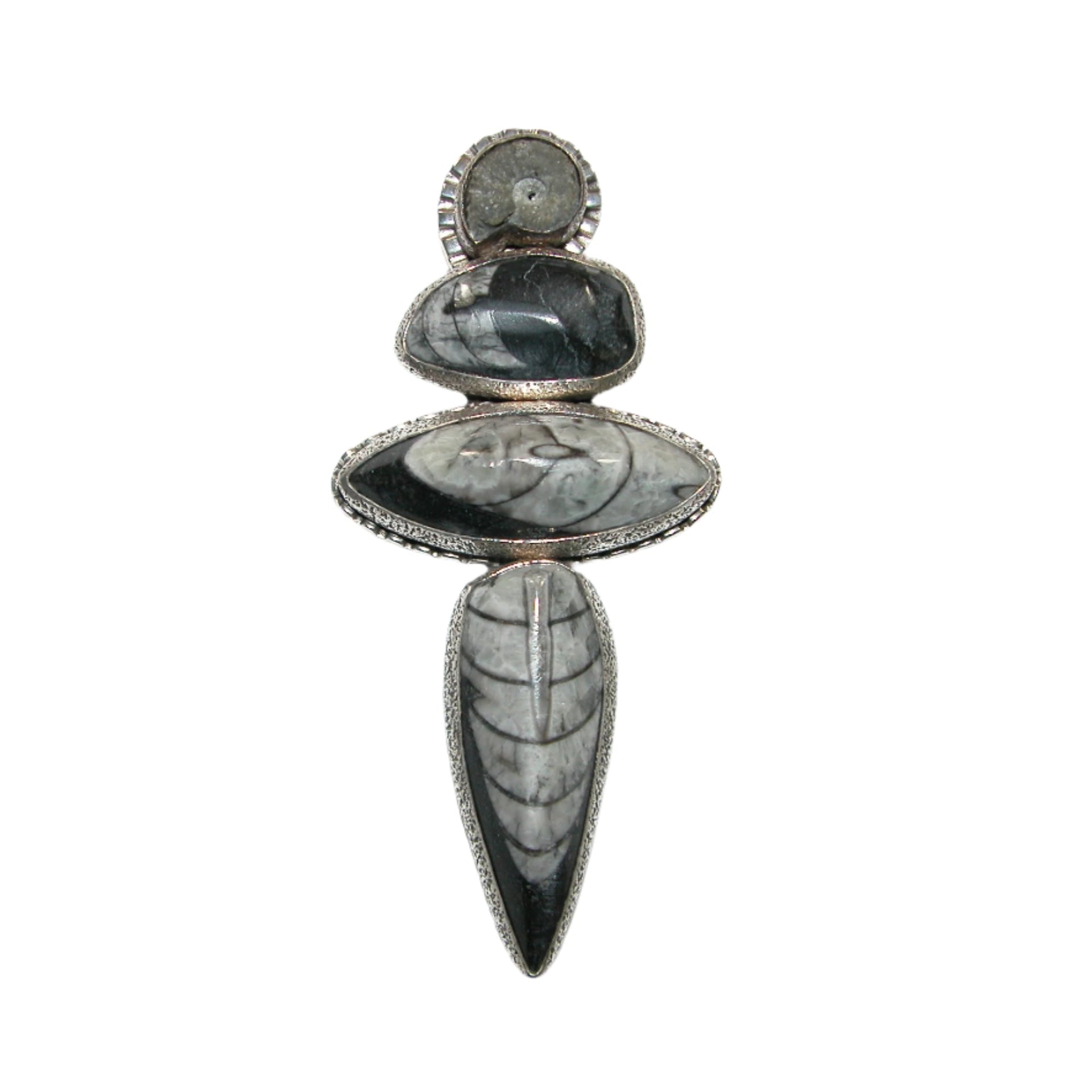 Four Stone Cabochon Sterling Silver Pin and Pendant