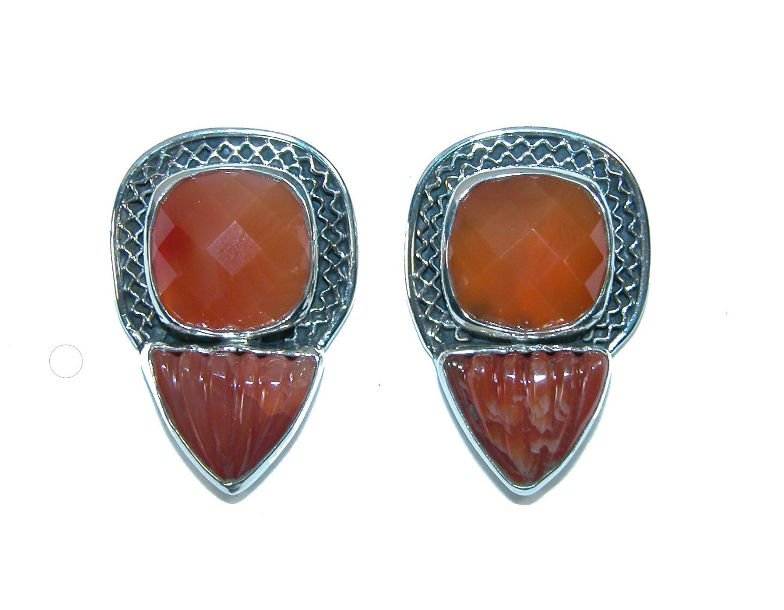 31786 Two Stone Carnelian Post or Clip-On Earrings