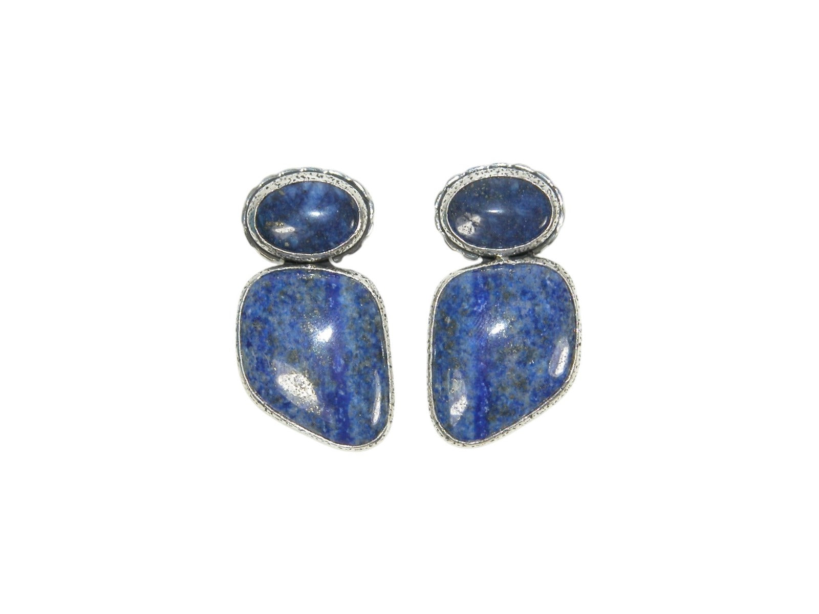 33549 Two Stone Lapis Lazuli Sterling Silver Post/Clip-On Earrings